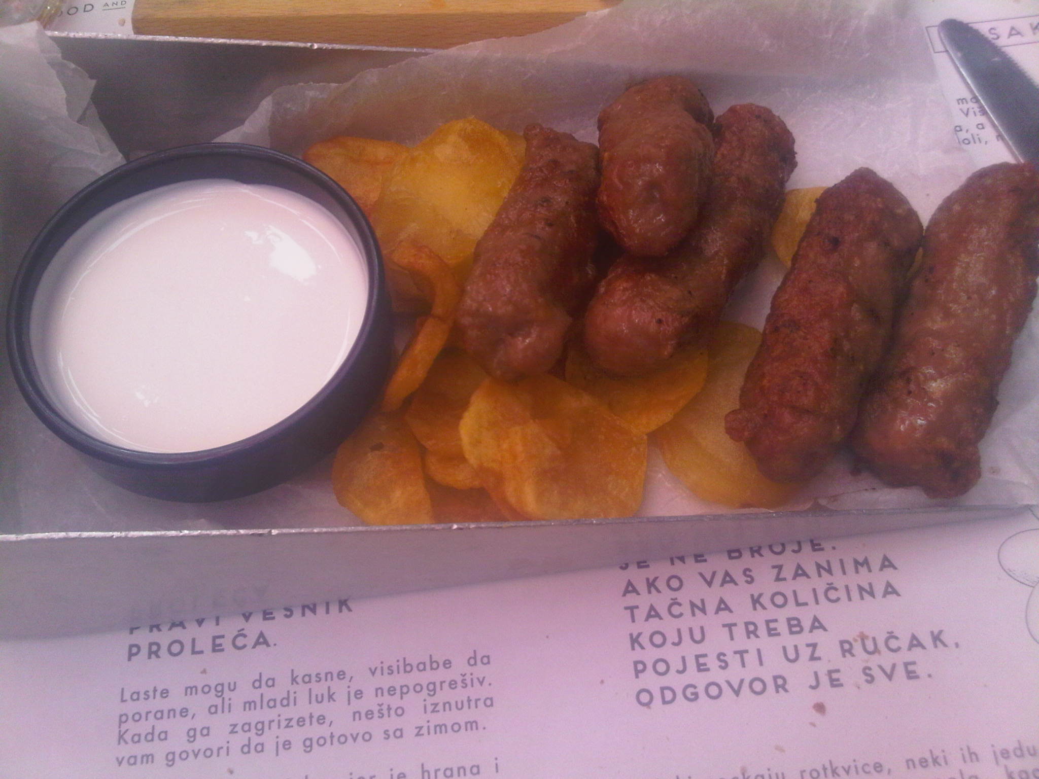 Meşhur yemekleri Cevapcici’yi denemek için Manufaktura adında bir lokantayı seçtik. Yemekleri, dekorasyonu, servisi o kadar hoştu ki, gönül rahatlığıyla tavsiye edebilirim. Knez Mihailova’ya pek yakın olan bu mekanda Cevapcici’yi, yerel Balkan lezzetlerini ve Sırp şaraplarını deneyebilirsiniz.